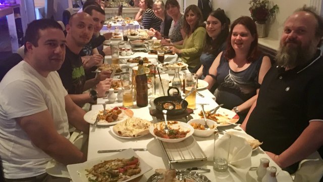 This is a somewhat more formal event in that we will have a table booked for a certain number of people at a certain time and expect everyone to arrive and eat together (so do please let us know if you're going to be late), however it still gives people a chance to meet and chat with the people sitting around them. If the meal isn't over too late it sometimes gives us a chance to mingle at the bar or a nearby pub afterwards before heading home.